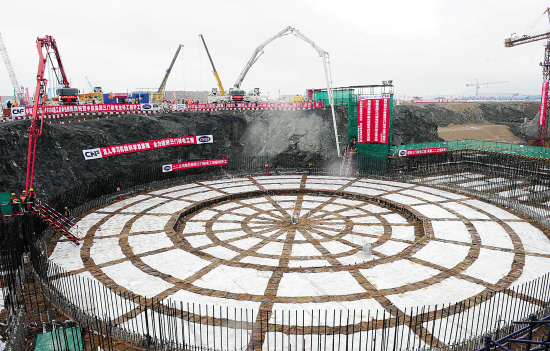 仪式前,李克强在赵洪祝、吕祖善等陪同下冒雨考察了三门核电1号核岛基坑浇筑情况。