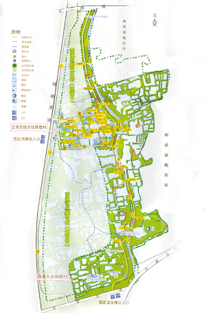 西溪湿地西区,西以绕城公路为界,北至文二西路,南至五常大道,东侧与西溪一、二期工程衔接,面积3.35平方公里,在南端五常大道的龙舌嘴处和西侧访溪路的洪园游客服务中心都设有出入口。主要景点分为五常民俗文化体验村、西溪大众休憩村、农耕文化村和艺术集合村四大功能区块。