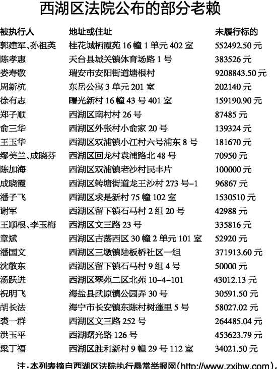 其实,早在4月1日开始,西湖法院的这个执行悬赏举报网已经开始运行,并在网上陆续公布了35个老赖。