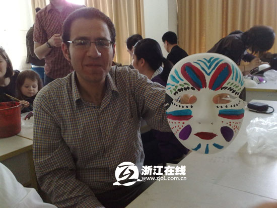 国际友人展示自己画的脸谱