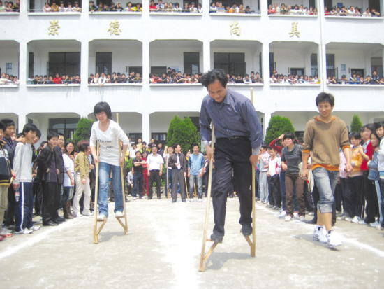 近日,三界镇中学举行了教师“踩高跷”比赛。