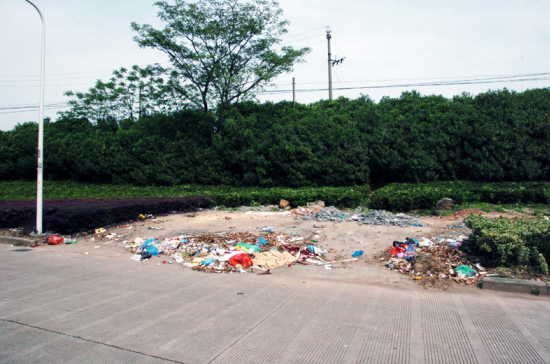 在市区儿童公园附近的绿化带中,竟然出现了一个“天然垃圾场”,与周围的环境格格不入。