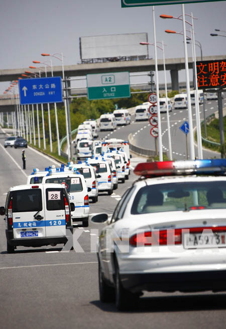 5月5日,28辆急救车搭载着77名墨西哥在沪人员向浦东机场进发。