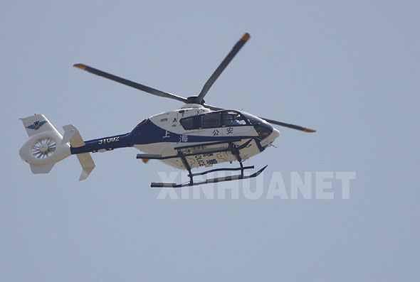5月5日,警用直升机为转运车队提供空中警戒。