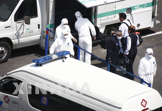 5月5日,准备回国的墨西哥公民正在浦东机场接受检验检疫。