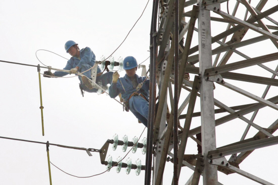 近日,110kV富润变两条35kV线路——富北3880、富崇3881线顺利投运。这两条线路的投运,进一步完善了该地区电网的结构,提高了输送电能力和供电可靠性,为今年迎峰度夏做好了充分的准备,同时也为地方经济发展打下了坚实基础。图为电力工人施工的场景。