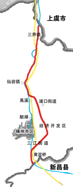 104国道上虞段改建工程2005年底完工通车,新昌段也于2007年完工通车。嵊州段建设起步于2006年3月,其间由于土地、资金、政策处理等种种原因,工程进展断断续续。去年9月,国家开发银行授信3.3亿元,为该工程的顺利展开奠定坚实基础。今年2月,工程正式全线铺开。