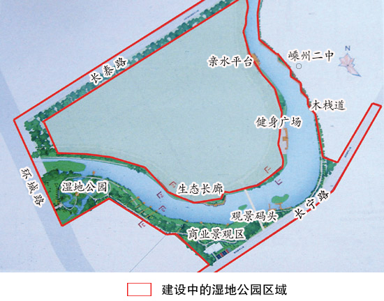 市建设局副局长陈士英介绍,城西这一区域较为主要的市政设施有环城路、长广路、长宁路、长安路等道路和长乐江桥、长安桥,这些路桥没有形成合理的路网,区域内居民、学校和企业也不是十分方便,湿地公园建成后,新建长泰路、长宁路也将与环城路贯通,在为市民提供良好休闲场所的同时,也形成了合理高效的路网结构。