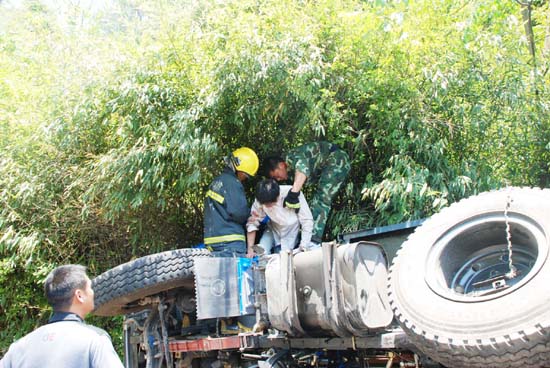 5月8日上午,谷来镇三合村路段发生一起货车撞山事故,造成2人受伤被困严重变形的车内,所幸消防官兵第一时间赶到将人救出。