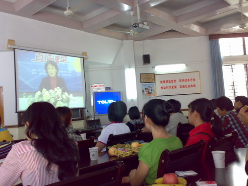 通过党员干部现代远程教育广电前端播出平台“专家在线”栏目对全街道基层妇女干部进行集中培训是属第一次,该平台播出的内容图像非常清晰,主讲领导深入简出的讲课,使全街道的妇联干部收益很大。