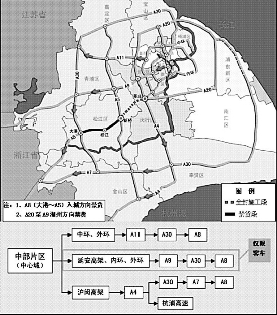 进出上海市中心城区的绕道示意图