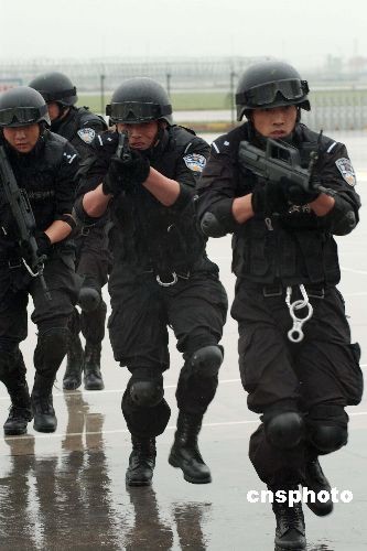 风雨中,一架EC一五五直升机迅捷起飞,在空中盘旋一周。轰鸣声中,机上警员放下绳索,四名全副武装的特警沿绳索从天而降,着陆后迅速执行突击任务……