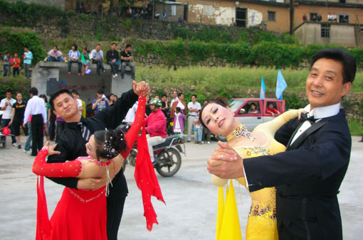 5月17日傍晚,仙岩镇政府和该市华光舞蹈队在该村健身广场,举行了“建设小康 健身强体”华光舞蹈《走进舜皇》专场联谊会,引来全体村民的观看。