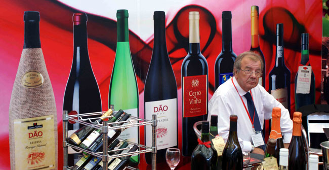 葡萄牙红酒展区布置得艳丽缤纷。