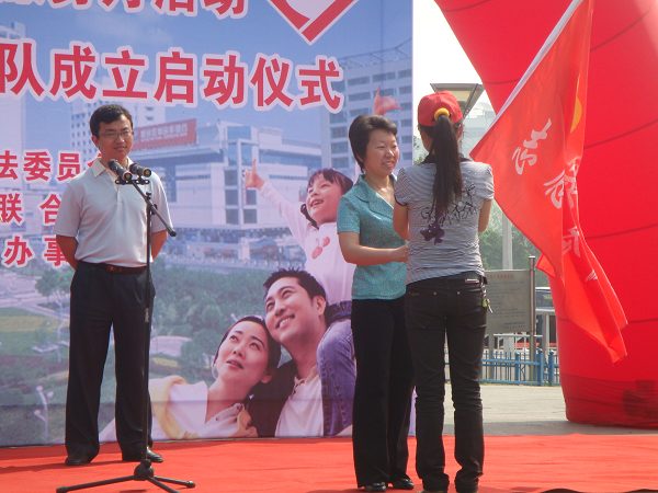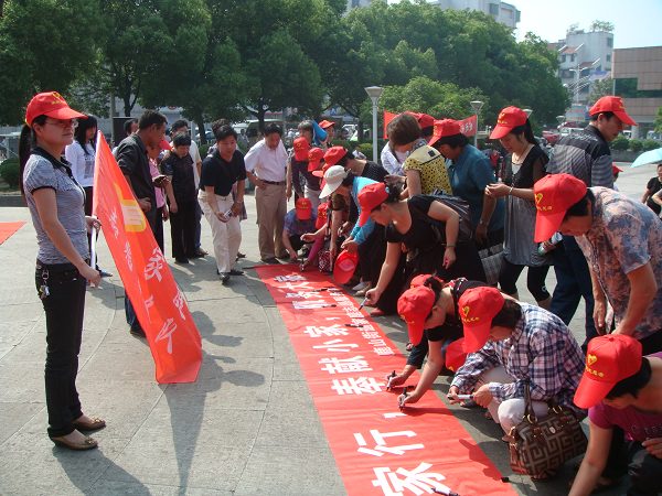 5月22日上午八点半,市政法委、市妇联、鹿山街道党委办事处在嵊州市中心广场开展平安健康你我他,文明和谐进万家活动。
