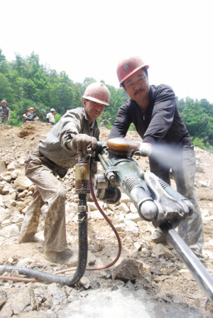 去年6月28日,施工单位进入前岩水库场地开始做前期准备工作,10月初,前岩水库除险加固工程主体工程正式开工,截至目前已累计完成总投资2200万元,累计完成土石方6.8万立方米,砼浇筑800立方米,浆砌石1450立方米,砼防渗墙浇筑7600平方米,目前已完成了砼防渗墙工程、三座副坝套井回填工程、量水堰截水墙工程、坝肩帷幕灌浆工程、测压管安装、泄洪闸溢洪道工程、条石护坡砌筑4500立方米,近1.5万平方米。三座副坝,除坝顶结构外已全部完成,目前正在抓紧主坝背水坡的条石护坡砌筑、防渗墙头墙浇筑的前期准备工作,预计工程将在年底前全部完成。