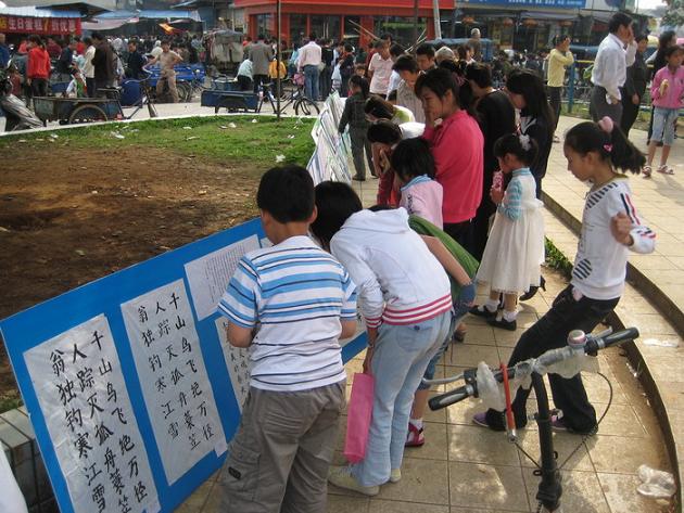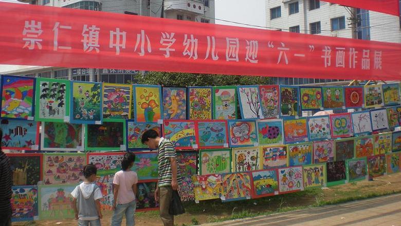 近日,崇仁镇中小学幼儿园迎六一书画作品展在崇仁广场举行。
