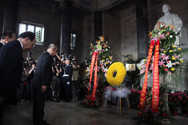 6月1日,中国国民党主席吴伯雄和他率领的中国国民党大陆访问团在南京中山陵举行谒陵纪念活动,纪念孙中山先生奉安80周年。新华社记者 邢广利 摄