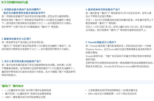 暴风公司给出的“关于召回事件的问与答” (来源:暴风公司网站的截屏)
