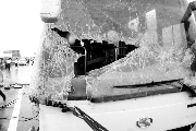 28名乘客躺在碎玻璃上,几乎全都挂了彩,困在车内。