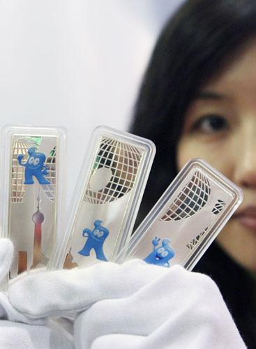 “上海世博银”采用.999纯银材质,糅合镜面、喷砂、彩印、浅浮雕等众多高科技制作工艺,分为套装和单品两种产品形式。套装由5根40克重银条组成,限量发售5000套;单品分50克、100克和1000克三种规格,分别限量发售10000条、8000条、1000条。在产品设计方面,上海世博银不但集合了多种世博元素,还特别凸显了上海特色。