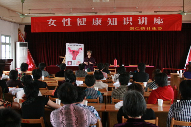 崇仁镇计生协在6月3日下午,邀请著名的妇女病教授在镇四楼会议室上了一堂精彩的女性健康知识讲座。全镇有100多名的计划生育服务员和联系员参加了这次讲座。教授以自己丰富的知识,结合直观的图片,通过生动和通俗易懂的方式向大家介绍了常见妇女病的防治方法,并介绍了一套自我检查妇女病的要点,做到早发现,早治疗。使大家受到了不少启发,对提高打击的生活质量有很大的帮助,赢的一阵又一阵的掌声。会后还分发优生二免的宣传资料5000多份,对做好崇仁镇的计划生育工作创造了良好的宣传气氛。