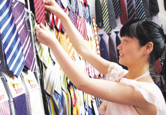 今天,浙江投资贸易洽谈会在宁波举行,嵊州领带、茶叶、家纺将在会中展出。昨日,嵊州领带一露面就引来众多中外客商,不少客商被嵊州领带丰富的花色和面料所吸引。嵊州招商局负责人说,此次活动除嵊州企业积极参展以外,他们还参加旅游、电机等多个项目的对接会,同时还将邀请10多个国家和地区的中外客商到嵊州考察投资。图为嵊州百事吉领带的工作人员在现场向中外客商展示嵊州领带。