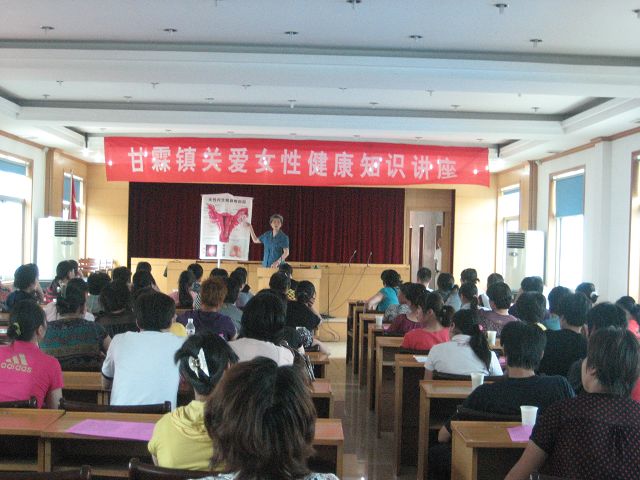 为了进一步促进女性健康素质的提高,把关爱送给广大的女性朋友,2009年6月8日下午1时半在甘霖镇举办了“关爱女性健康知识讲座”。魏教授为150多名女性朋友做了精彩的女性生殖健康知识讲座,讲座中从健康的意义和理念、如何获得健康身体、医学知识等几方面,通过举例子、讲事实、深入浅出、生动形象讲述了女性应该如何关爱自己的健康,让在场的听众受益匪浅。讲座之余,女性朋友纷纷向魏教授咨询,魏教授也对他们提出的问题一一做了耐心细致的回答和讲解,并进行发放了“二免”宣传资料。 讲课气氛非常活跃,宣传教育效果明显。讲座活动结束后现场响起热烈的掌声,大家纷纷表示通过健康知识讲座,即提高了女性自我保健意识,又掌握了更多的身心健康方面的知识,收获很大,希望以后能经常学到生殖保健知识。