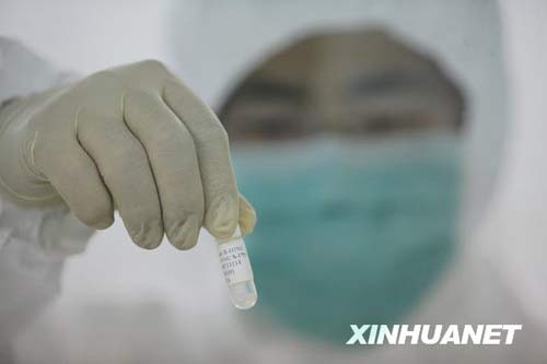 6月8日,科研人员在进行毒株种子批的制备工作。当日,来自美国的甲型H1N1流感疫苗生产用毒株NYMCX-179A,从美国运抵北京,并经过通关、检验检疫等手续后,送抵北京科兴生物制品有限公司。已经完成疫苗临床研究工作的北京科兴当晚启动了毒株种子批的制备工作,这标志着甲型H1N1流感疫苗的批量生产正式启动,并有望于7月底生产出首批疫苗。新华社记者 邢广利 摄