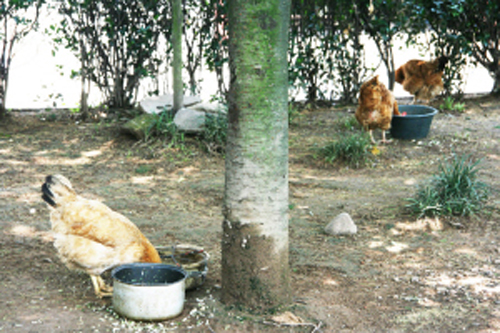 龙会三路是市民休闲散步的好去处,但笔者拍摄到这里的居民在绿化林中养鸡养鸭,这是一种很不讲究文明卫生的现象,希居民小区管一管。