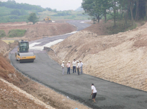 6月8日下午,随着压路机最后一次碾压路面,市新越剧艺术学校校内道路浇筑完成并贯通。越剧艺校校内道路全长600米,宽度根据地势和需要为6~20米。图为压路机碾压路面的场景。