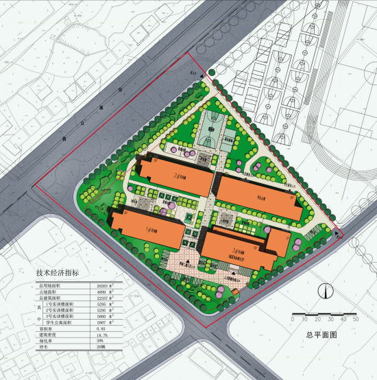 市职业教育公共实训基地位于鹿山街道雅致村,环城西路东南侧,市职教中心旁边。占地面积为25508平方米,其中道路4975平方米,实际教育用地为20533平方米。总建筑面积为24211平方米,3幢实训楼建筑面积为16834平方米,学生宿舍楼建筑面积7377平方米。整个工程投资概算为3298.68万元。