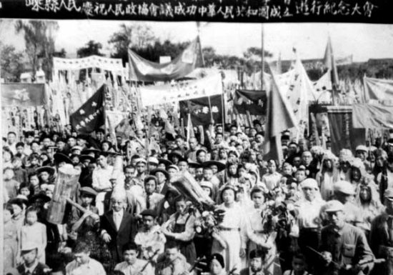 1949年10月,城关镇各界数千人集会、游行,热烈庆祝中华人民共和国成立。