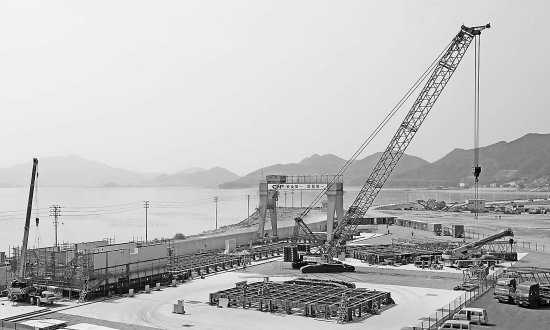 东海之滨三门湾畔,安静的猫头山半岛上,世界上最大的履带式吊车犹如在青山绿水中作画:各种核电设备经过大吊车的抓取,像堆积木一样完成模块拼装。过不了多久,这里将矗立起一座标志性的白色圆形核岛。