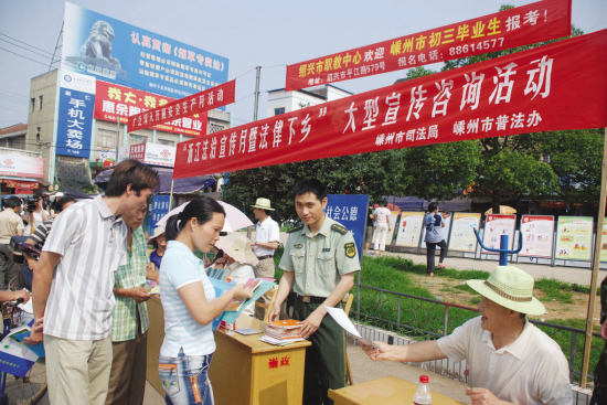 6月16日上午,浙江法治宣传月暨法律下乡活动在崇仁镇举行,一份份贴近普通老百姓生活的法律宣传资料受到了当地群众的欢迎。