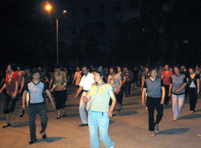 崇仁古镇悄然兴起排舞风,而且队伍在不断壮大,大有方兴未艾之势。它不受场地、年龄、性别等各种因素限制,易懂好学,只要有个录音机,有块空地,几个人一凑,就可跳起来。初学者先跟着跳十六步、三十二步等步法,学会一些十字步、交叉步、左转右转等基本动作,跟几次后就在合上音乐跳舞了。跳舞者以妈妈级妇女占多数,其他人群也有加入到排舞队伍,年龄最大的是70多岁的老奶奶辈,最小的是一些小学生,孩子们有的约好小伙伴同来,有的母女同台舞蹈,还有的全家出动。 “跳排舞既可学到优雅的舞姿,又可放松心情,还可轻松达到健身减肥的目的。”在场的人都认为,排舞丰富了她们的业余生活,充实了她们的精神世界。一位排舞学习者的丈夫裘先生称,自从学习排舞后,他妻子把打了多年的麻将也戒了,而且发现血压也不高了,这样的好事吸引了她的好多邻居都随她一起定时到富民街学跳排舞。