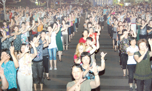 每晚七点半左右,无论是市区的文化广场还是社区的小空地上或是农村的活动中心广场上,随着乐曲的响起,整个嵊州可谓有足足上万人在跳排舞了。短短的几个月时间,嵊州的角角落落掀起了跳排舞的热潮,排舞成了妇女们的新宠。