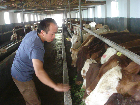 通源乡西三村的菜牛场内,饲养员正在喂草料。这家建设中的菜牛养殖场目前已经有存栏菜牛85头,都是从山东引进的优良品种。据投资者——通源乡菜牛养殖专业合作社负责人徐彬介绍说,从3月份动建至今,他们已经投入资金100多万元,第二批23头也将在近日运到,今年年底可以出栏。这一项目已经被列入30家市级现代农业示范基地,这也是我市唯一一家规模菜牛养殖场。