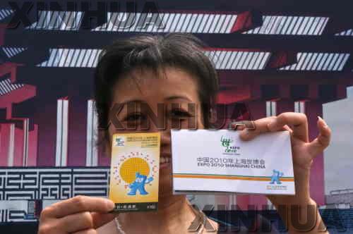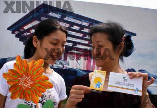 7月1日,上海市民展示刚买到的上海世博会个人门票。