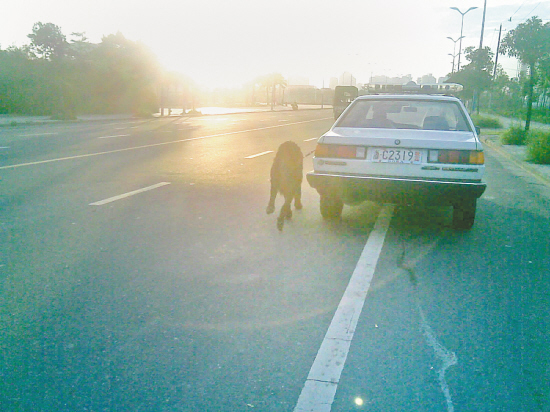 浙江在线7月2日讯()6月29日上午9点30分,温州某论坛出现了《今天早上拍的警察开警车溜狗照片》的帖子,发帖人称:“2009年6月29日清晨5点45在市府路,看到辆警车(牌照号为浙C2319警)遛狗,车的速度就比人散步快一点。”