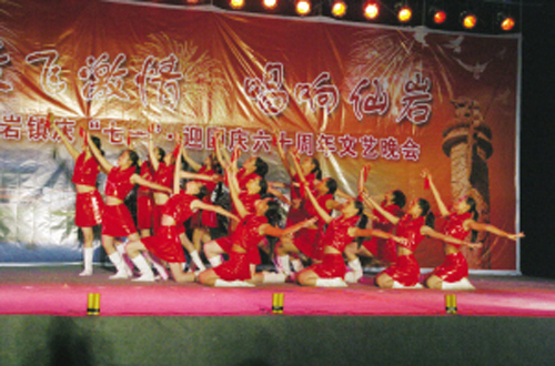 7月1日晚上,仙岩镇举办了“庆七一”文艺晚会。晚会以歌舞、小品、戏曲、诗朗诵等形式讴歌了中国共产党走过的88年光辉历程,展现了仙岩镇新面貌。图为晚会现场。
