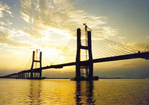 应校长就是从大桥中间跳下去的 温州大桥是全国最长的公路桥,全长17.1千米,桥下净高31.3米。