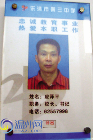 监控里的中年男人,叫应泽平,是乐清三中的校长,从教20多年。