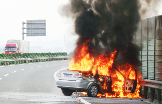 高速上与护栏相撞 雪佛兰起火死1人