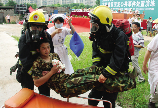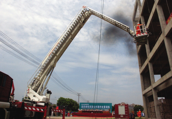 昨日上午,我市在三江街道保罗大酒店举行高层建筑突发公共事件处置演练。市委副书记、市长盛秋平,市委常委、常务副市长吕丙,市人大常委会副主任叶江仁,副市长俞忠毅,市政协副主席丁法军,市人武部长吴先朝等到现场观摩并指导。
