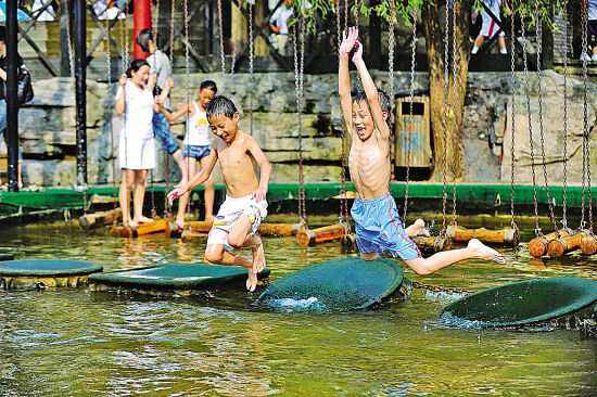 “看来得改变计划,下午回宾馆休息,晚上再出来玩了。”正和记者交谈的时候,付先生的两个孩子在边上抢水喝。大儿子说要喝水,可是弟弟死死抱住水瓶不放。“刚才买了几瓶水,可一会工夫就喝得差不多了。”