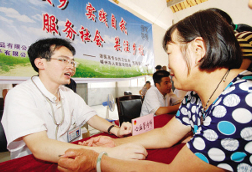 昨日上午,浙医高专公共卫生系学生和市人民医院7位医师在位于崇仁镇茶亭岗村的市龙井茶机厂举办义诊活动,据统计,共有200来名群众接受了义诊。