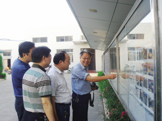 近日,市总工会企业文化调研组人员冒着酷暑,深入企业调研企业文化构建工作。浙江宏达制衣有限公司在构建企业文化方面已有所建树,特别是在“善待员工”和“提升员工素质”等方面已初见成效。市总工会深入该公司调研后,将总结经验,倡导全市的企业根据各自的特色,构建企业文化,抵御金融危机,发展壮大企业。图为调研组人员在宏达公司调研。 (吴锡英)