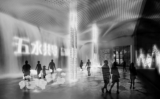 “比如说表达历史的,我们用了一个很诗意的小场景——用一泓清泉引来溪水,溪水既是每日生活里常见的、依赖的小溪,同样也是王羲之笔下的曲水流觞,在水下是青瓷的历史碎片,溪水流过历史,便有了历史的诗意感。”当然,浙江馆也少不了“书圣”王羲之的书法,《兰亭序》这座中国书法的高峰,会很艺术地得以展现。“尤其外国观众看了之后,一定会记住山水浙江,人文浙江,品质浙江,诗画浙江。”