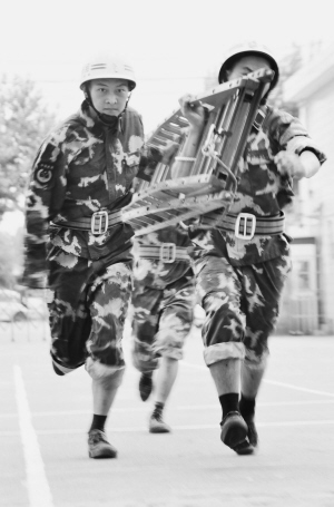 近日,嵊州新昌两地的消防官兵和武警官兵积极主动开展各种科学练兵活动,积极有效地结合实战,为在急难险重任务中保卫群众的生命和财产安全作积极准备。图为7月24日,嵊州市消防大队官兵开展练兵的现场。